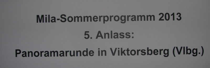 Das letzte Ferientraining dieses Sommers organisierte Kathrin Hensch. Das Dorf Viktorsberg am Berghang ob Götzis mit seinem Kloster hat wohl jeder von weitem schon gesehen. Doch die super Wanderwege und damit verbundenen Trainingsmöglichkeiten dort waren nebst Kathrin für alle Milas neu. Die Panoramarunde, welche unter die Füsse genommen wurde, hielt was sie versprach: 360 Grad-Rundblicke und herrliche Panoramasichten hinunter zum Rhein und auf die nahen Berge des Alpsteins, Liechtenstein und natürlich die Vorarlberger Spitzen mit der Hohen Kugel und dem Hohen Freschen. Sogar nach dem Sommertraining konnte das Panorama während einer feinen Verpflegung im Gasthaus «Viktors» noch genossen werden.
