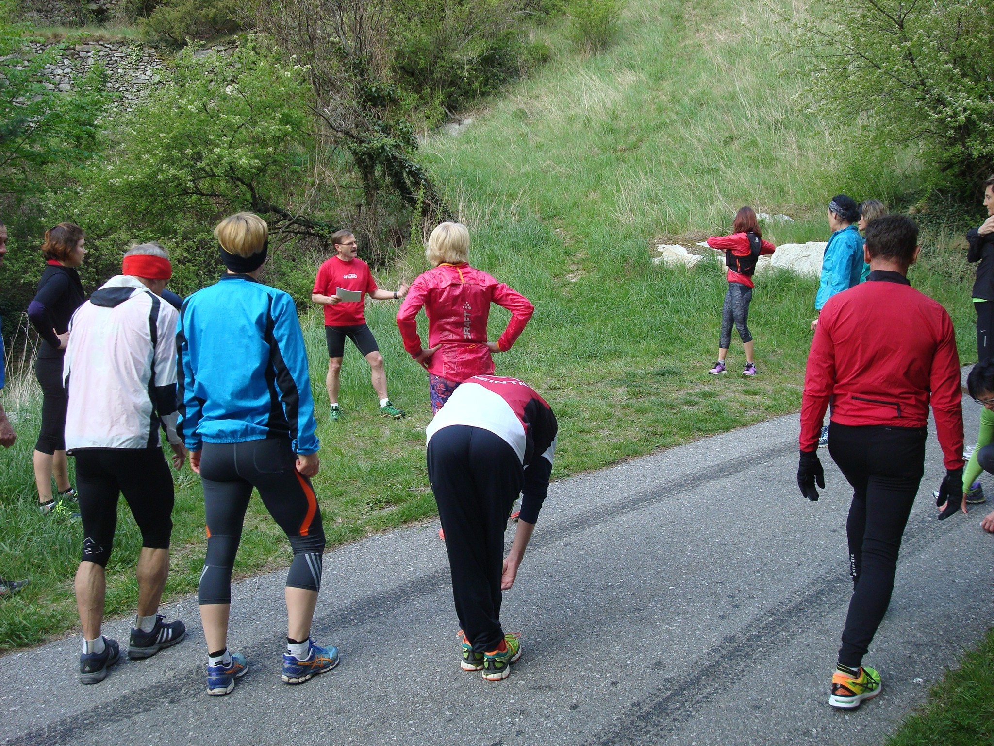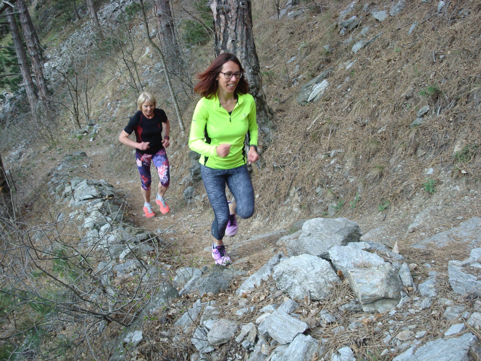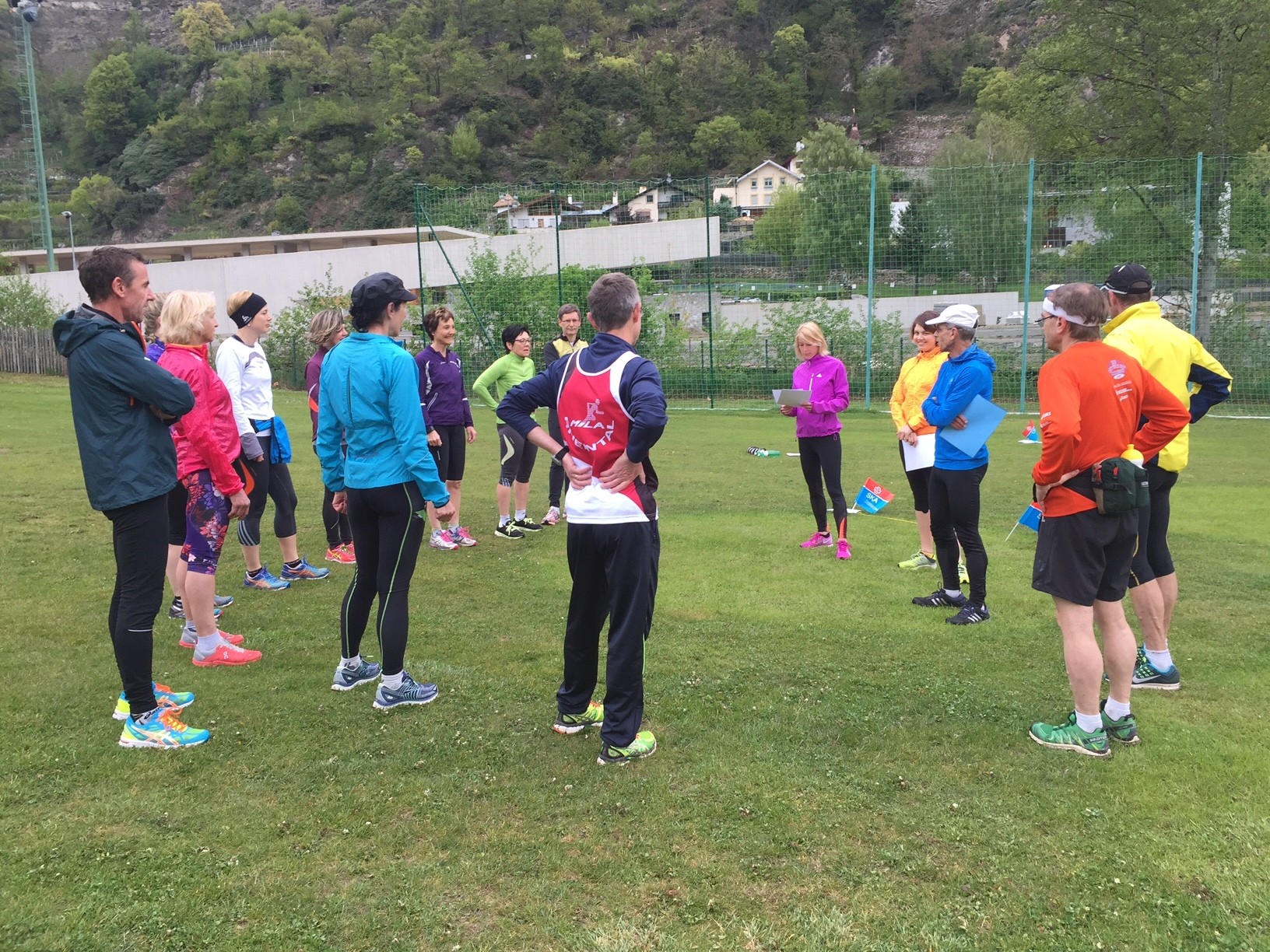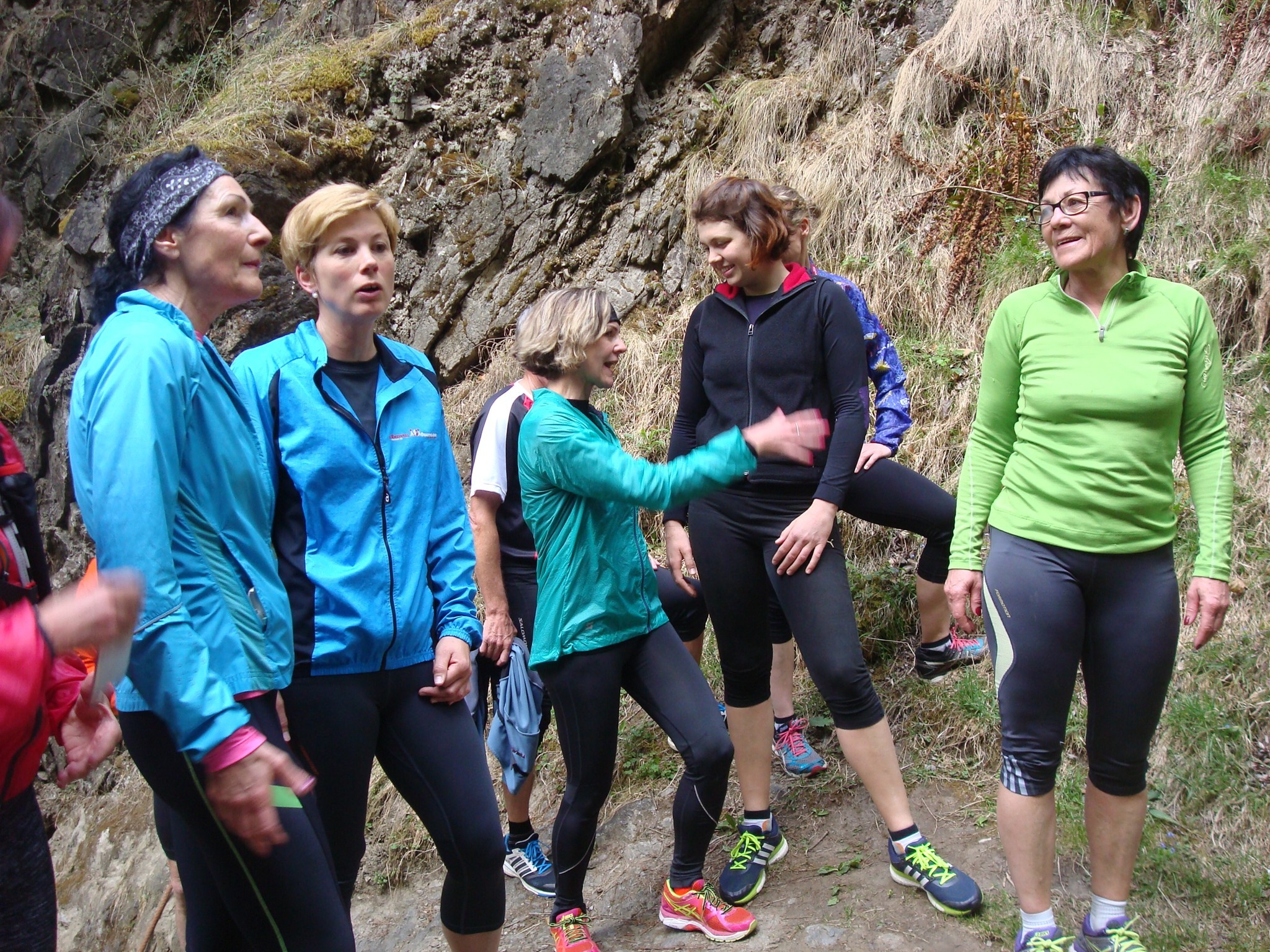Am Samstag um 07.30h eröffnete Berni das Training auf dem Marktplatz mit einer Denksportaufgabe, was alle Teilnehmer ohne straucheln meisterten. Felix übernahm danach und wir starteten bergwärts. Nach dem Einlaufen und Dehnen forderte ein anspruchsvoller kurzer Rund Trail die MILAS während 15 Minuten. Wir mussten möglichst schnell den Weg über die Steine und Wurzeln finden und den steilen Abstieg über das Geröll als Erholung nutzen. Dieses Training war extrem effizient, zeitsparend und machte viel Spass. Zum Abschluss bewunderten wir den Wasserfall der ganz in der Nähe in die Etsch fliesst.