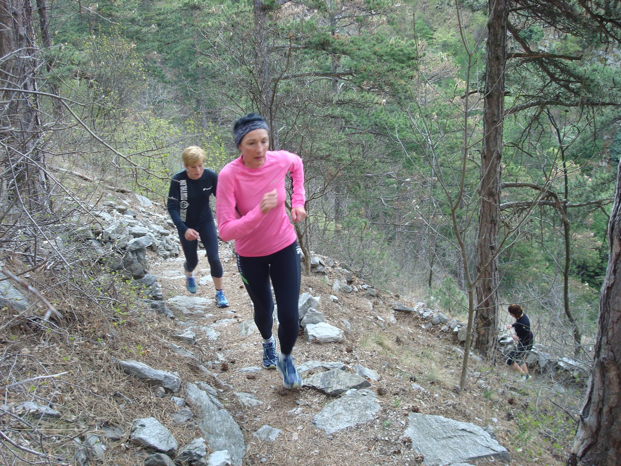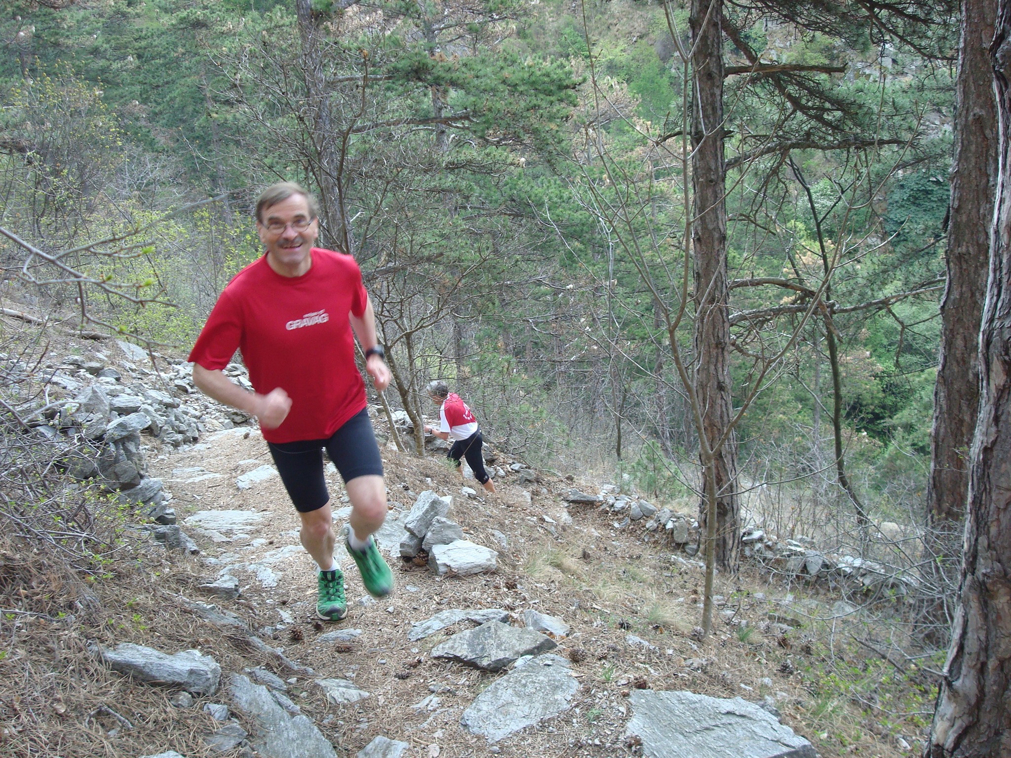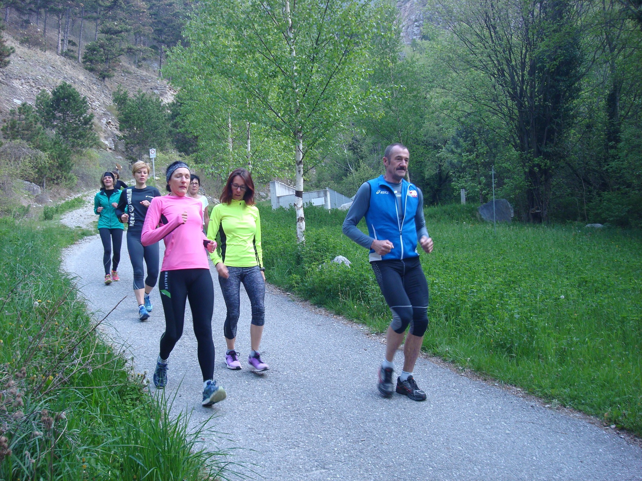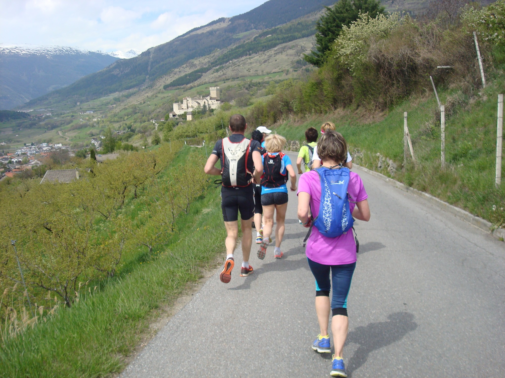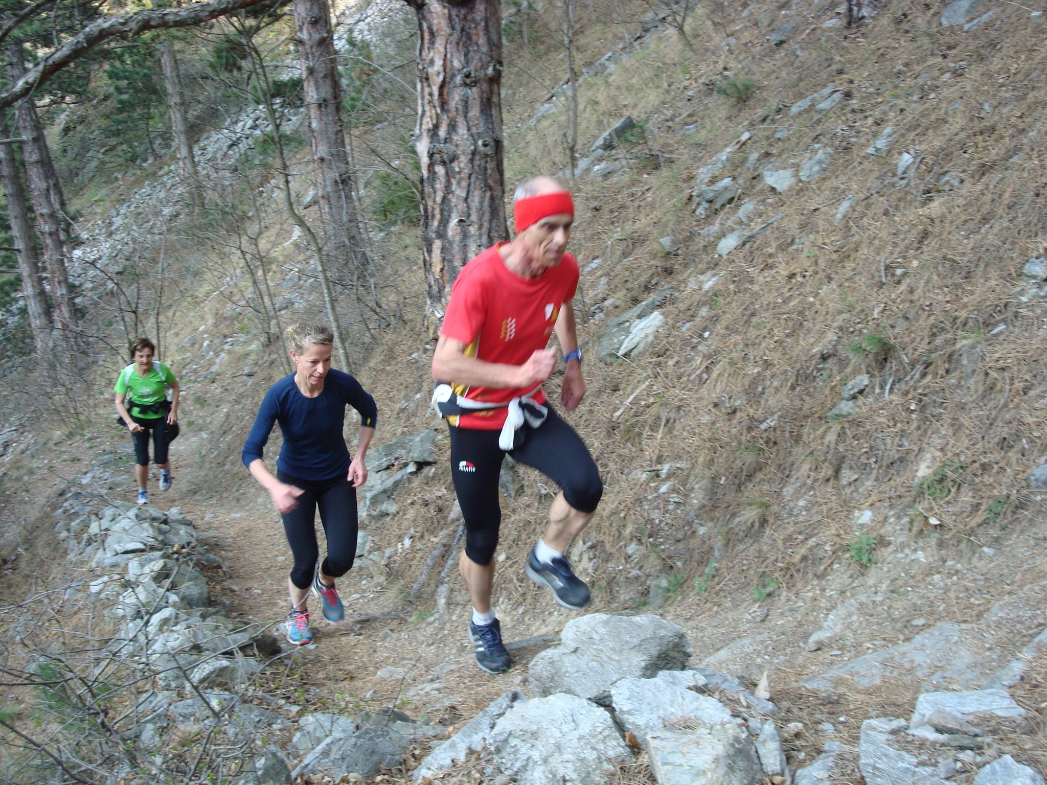 Am Samstag um 07.30h eröffnete Berni das Training auf dem Marktplatz mit einer Denksportaufgabe, was alle Teilnehmer ohne straucheln meisterten. Felix übernahm danach und wir starteten bergwärts. Nach dem Einlaufen und Dehnen forderte ein anspruchsvoller kurzer Rund Trail die MILAS während 15 Minuten. Wir mussten möglichst schnell den Weg über die Steine und Wurzeln finden und den steilen Abstieg über das Geröll als Erholung nutzen. Dieses Training war extrem effizient, zeitsparend und machte viel Spass. Zum Abschluss bewunderten wir den Wasserfall der ganz in der Nähe in die Etsch fliesst.