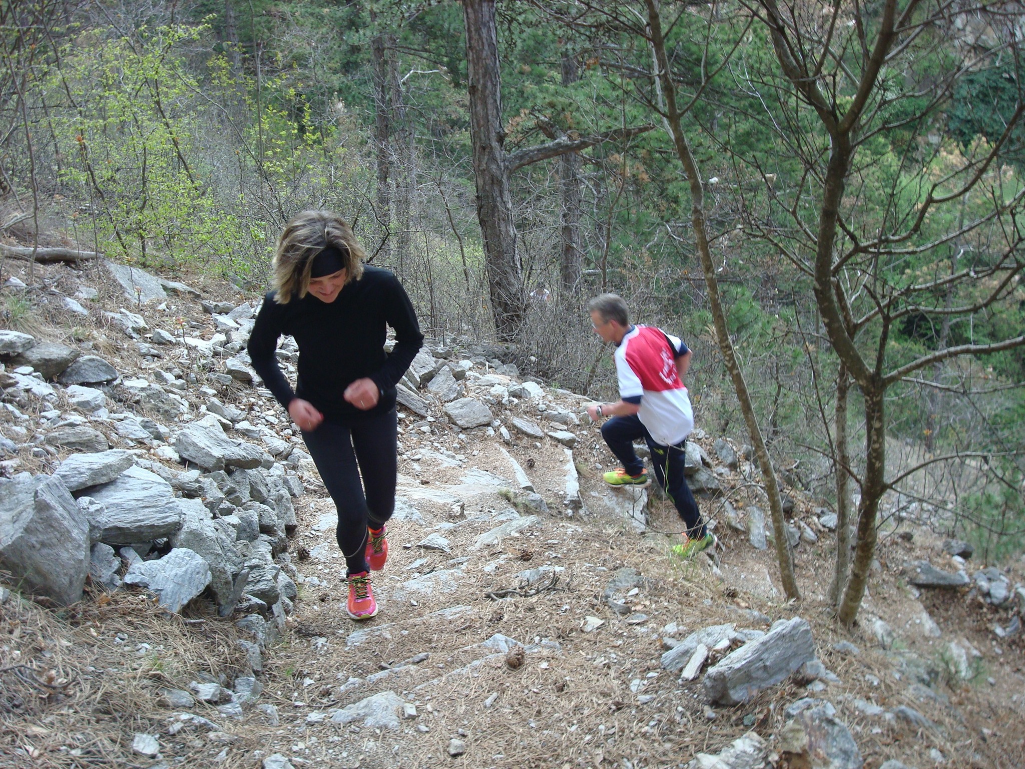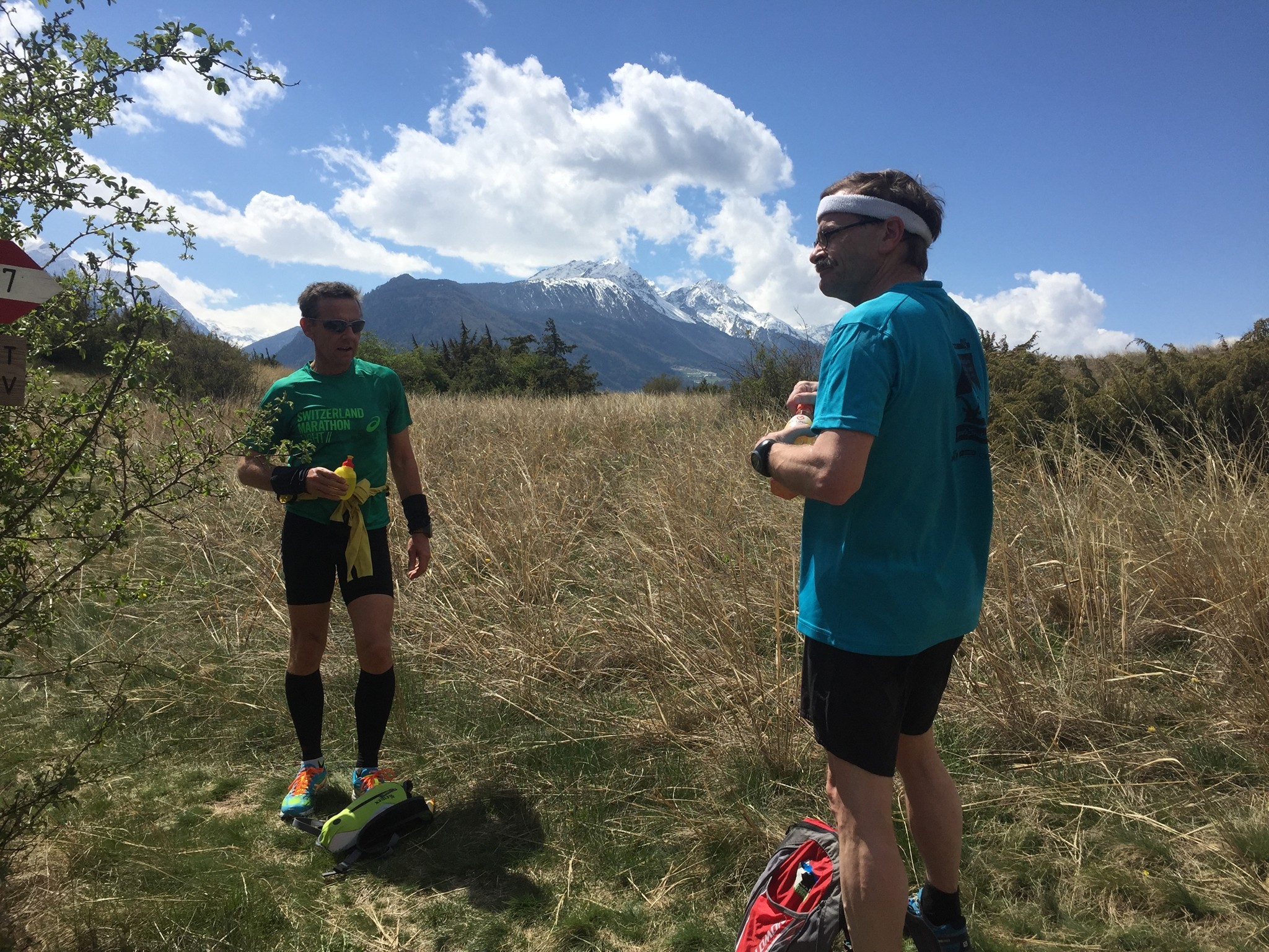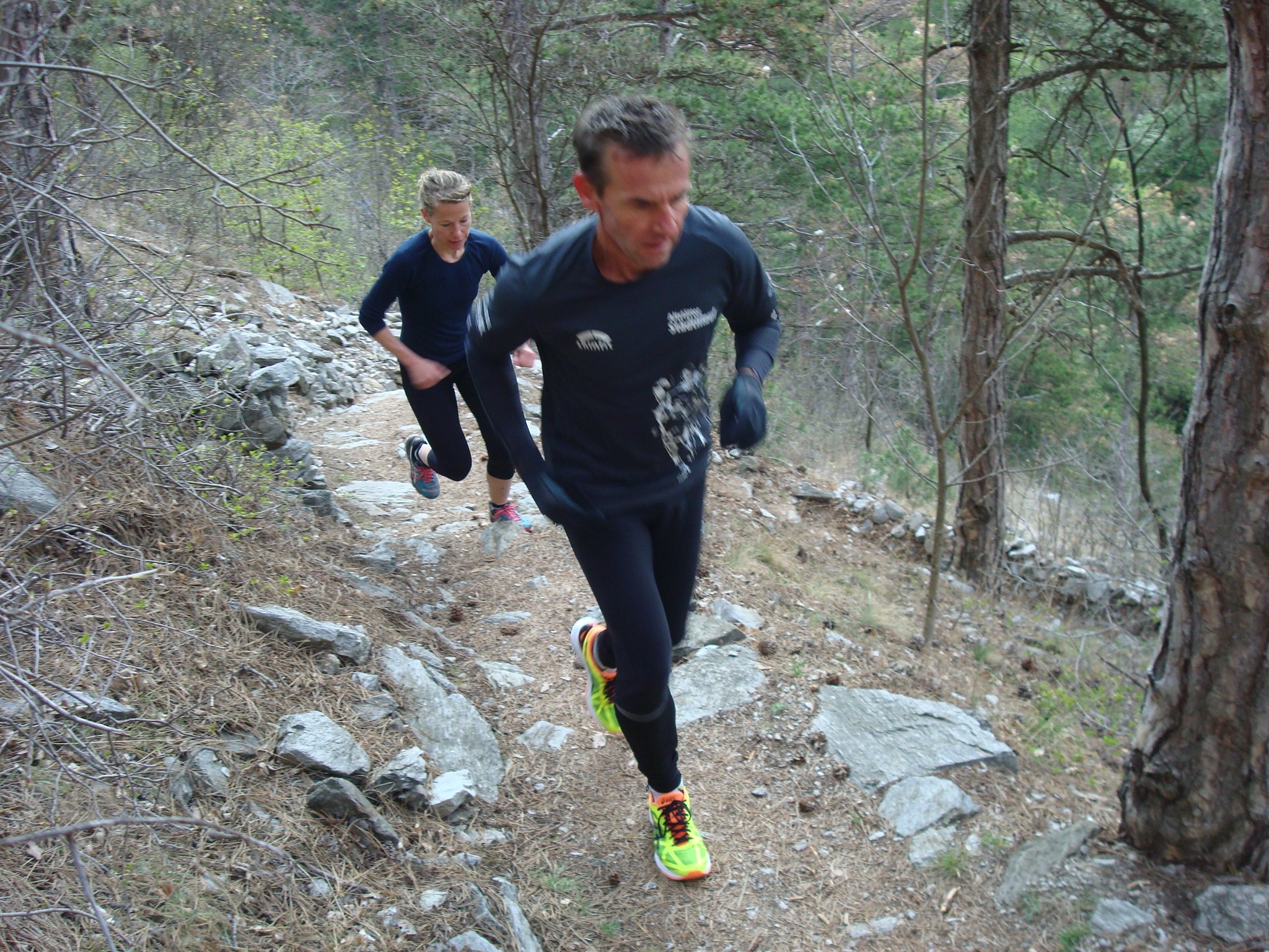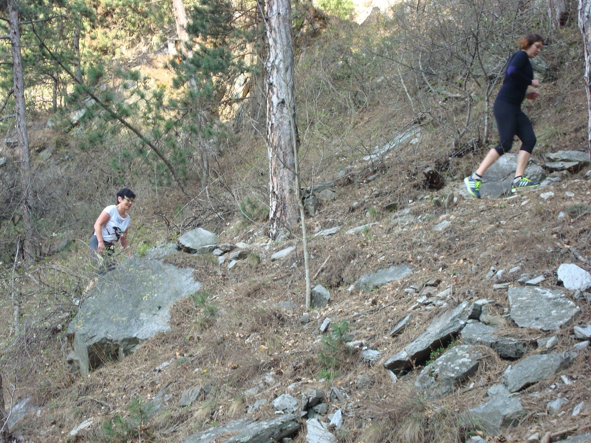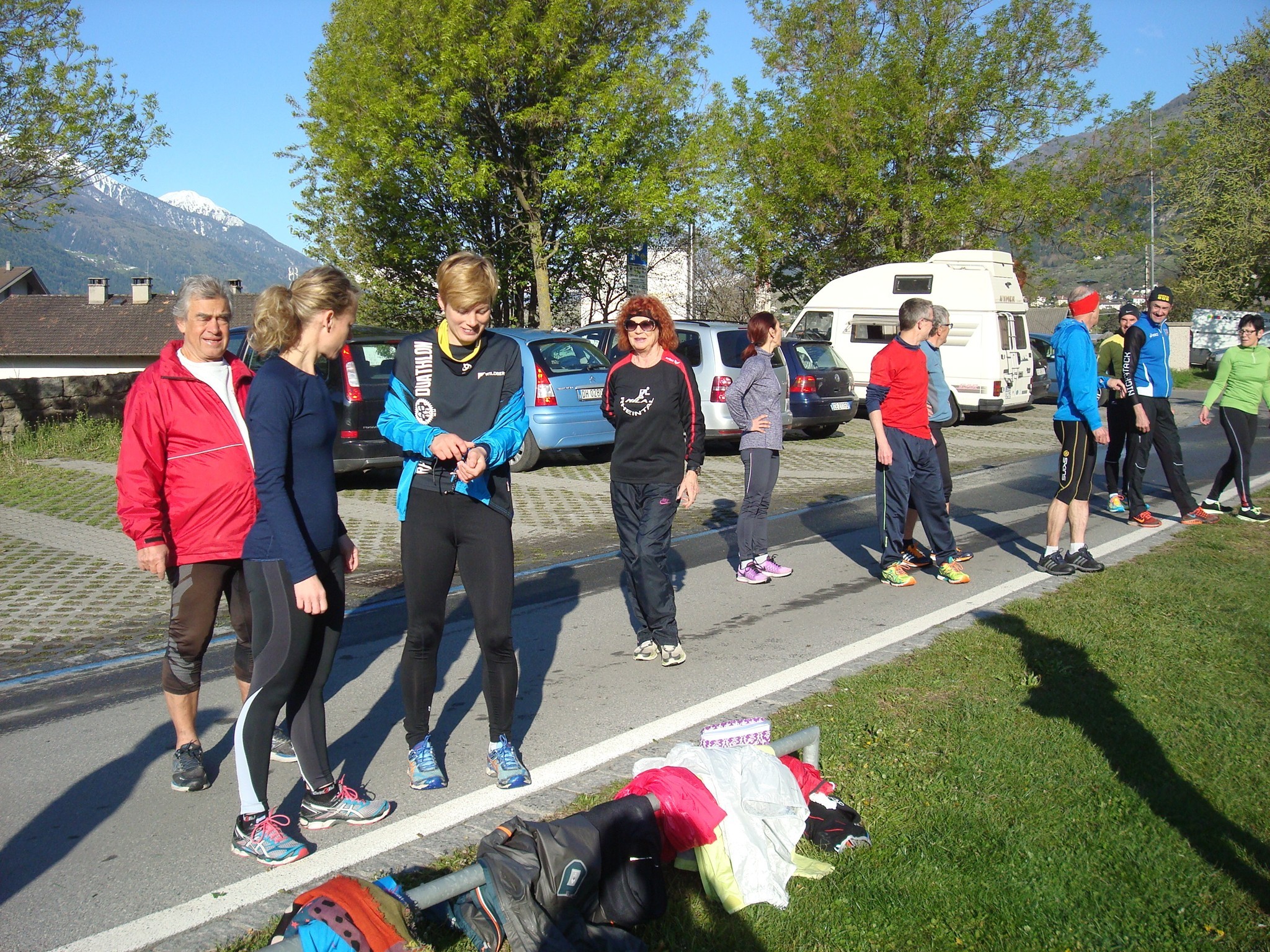 Am Samstag um 07.30h eröffnete Berni das Training auf dem Marktplatz mit einer Denksportaufgabe, was alle Teilnehmer ohne straucheln meisterten. Felix übernahm danach und wir starteten bergwärts. Nach dem Einlaufen und Dehnen forderte ein anspruchsvoller kurzer Rund Trail die MILAS während 15 Minuten. Wir mussten möglichst schnell den Weg über die Steine und Wurzeln finden und den steilen Abstieg über das Geröll als Erholung nutzen. Dieses Training war extrem effizient, zeitsparend und machte viel Spass. Zum Abschluss bewunderten wir den Wasserfall der ganz in der Nähe in die Etsch fliesst.