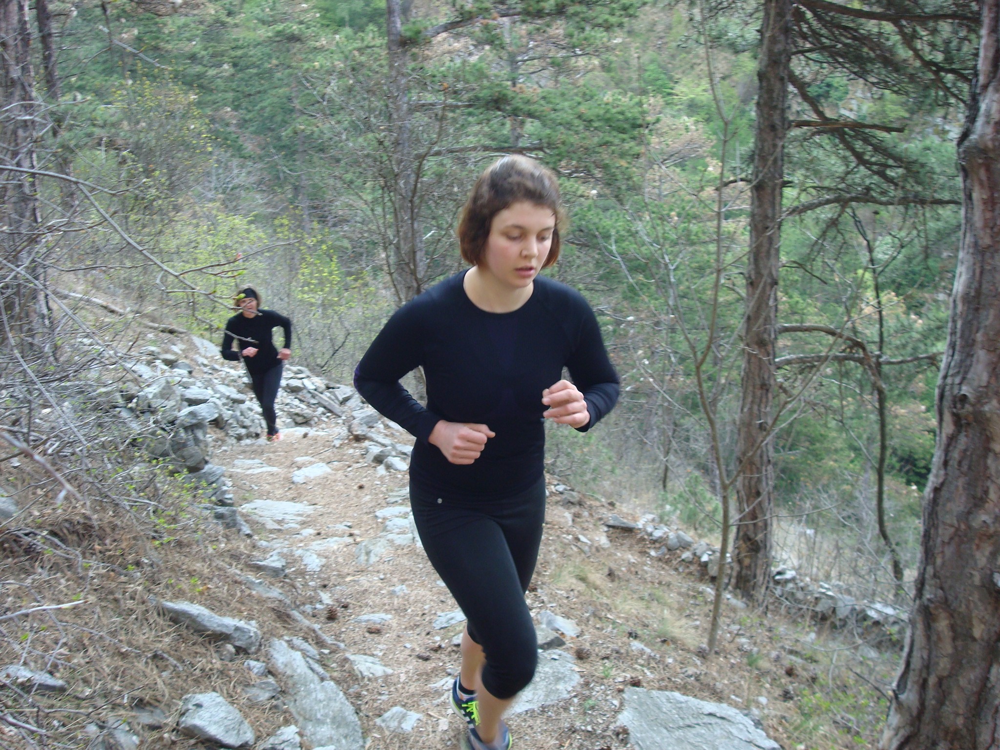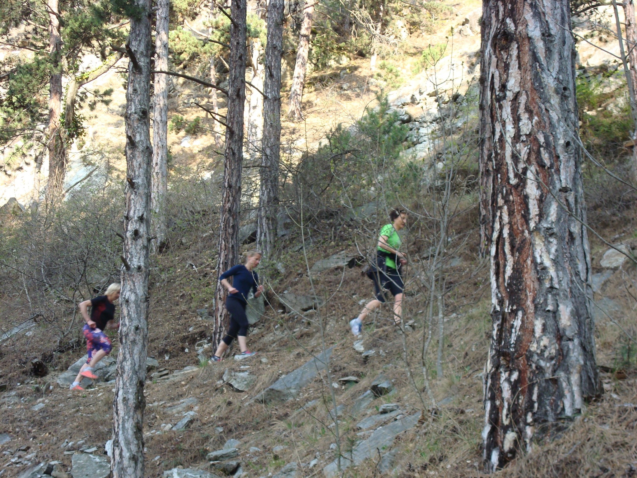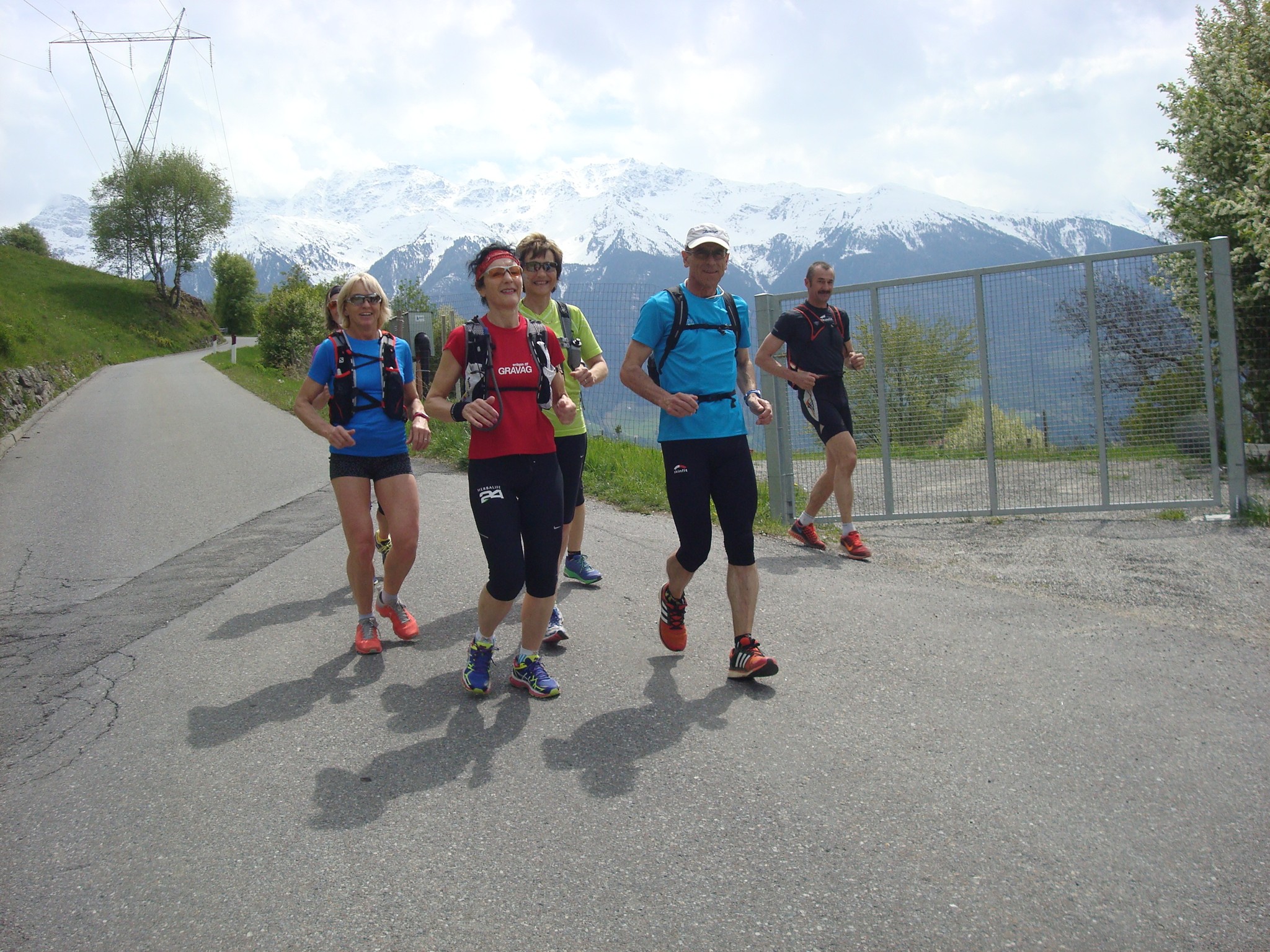 Den traditionellen St. Martinslauf durften wir dieses Jahr schon am ersten Trainingstag bestreiten. Mit dem Zug in Latsch angekommen, teilten wir uns in drei Gruppen auf, um die 1100 Höhenmeter zu bestreiten. Die mittlere Gruppe startete mit einem Einlaufen bis nach Tiss, wo wir die Steigung in Angriff nahmen. Der Goldrainer Panoramaweg führte uns über eine Hängebrücke wunderschönen Pfaden entlang bis nach Ratschill, einem Weiler auf knapp 1300 m.ü.M. Weiter über Wiesen und Waldwege schnauften, marschierten, joggten, liefen, trabten oder krochen wir bis zum Höhepunkt, der Bahnstation St.Martin. Alle Gruppen, inklusive Radfahrerin Mela, wieder vereint, traten wir die Abfahrt mit der Bahn an, womit unser erstes Höhenerlebnis seinen Abschluss fand.