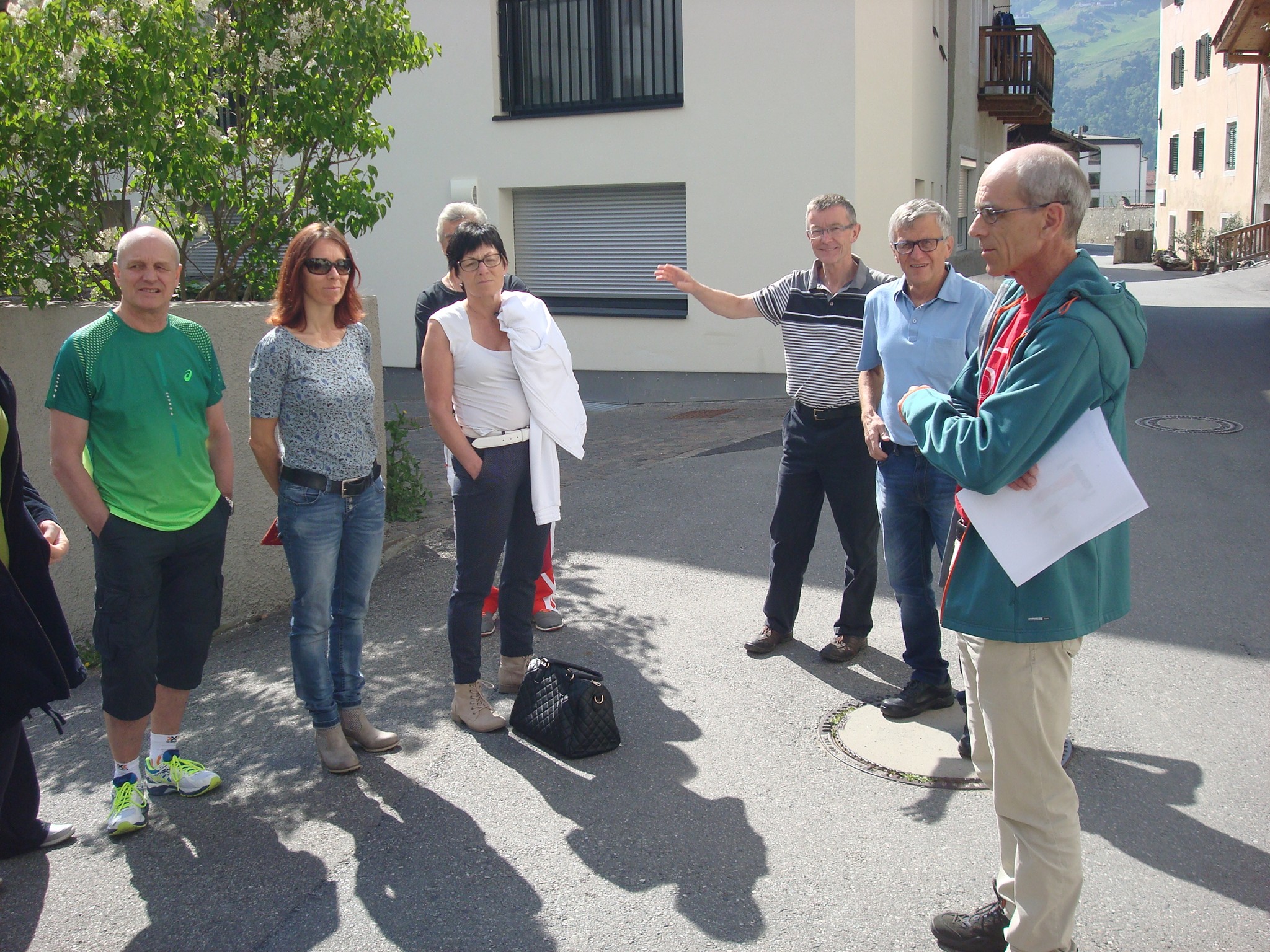 Um 12.55h kamen alle Milas wieder zusammen um sich auf den Weg zum Bahnhof Schlanders zu machen. Dort teilten wir uns in 3 Gruppen auf. Die Walker stiegen bereits in Eyrs aus und wanderten auf dem Höhenweg nach Schluderns. Die schnellere Gruppe, die ebenfalls in Eyrs ausstieg und von Mela mit Mountainbike unterwegs begrüsst wurde, erwartete schon nach kurzer Zeit ein steiler Anstieg und forderte höchste Konzentration und kräftige Oberschenkel . Der Höhenweg führte durch eine wilde und rauhe Landschaft bis nach Glurns wo wir die andere Gruppe wieder trafen, die von Spondinig aus den Longjog absolvierte. Nach kurzer Pause nahmen wir die letzten 2 Kilometer nach Mals in Angriff wo wir den Zug zurück nach Schlanders bestiegen.