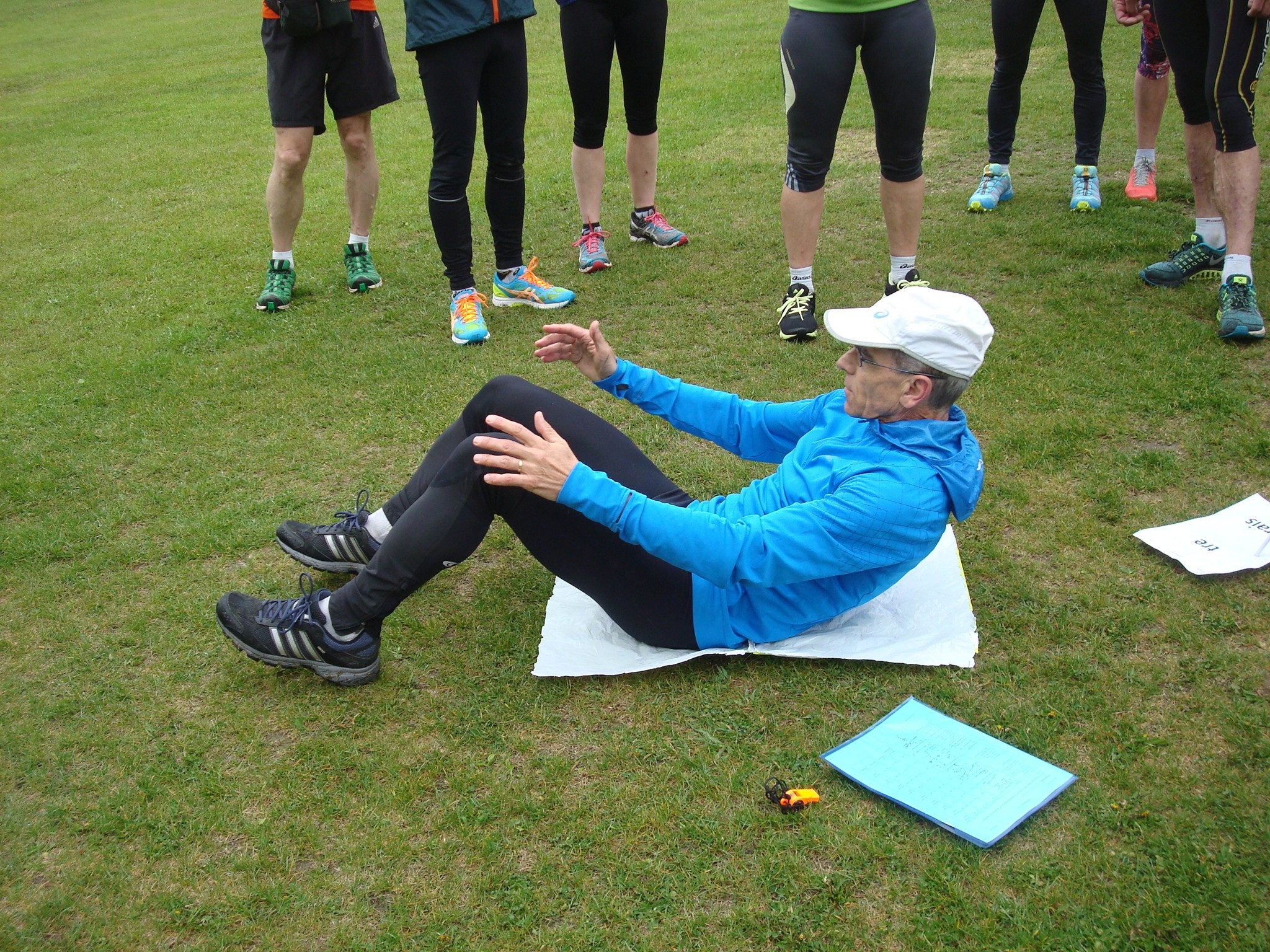 Zum Endspurt wurde unsere Fitness auf die Probe gestellt. In einem Parcour mit 10 Posten weckte Berni die von Läufern oft vernachlässigten Muskelgruppen aus dem Winterschlaf. Das vielseitige Programm (Brett, Liegestützen, Strecksprünge, Rumpfbeugen,?) führten wir in Zweierteams aus. Fazit der Sache ist, dass Waldi, Sandra, Fredy und bestimmt auch Berni zu den fittesten Milas gehören. Alle anderen sind nun aufgefordert, ihren Zustand bis zum nächsten Test zu verbessern ;)