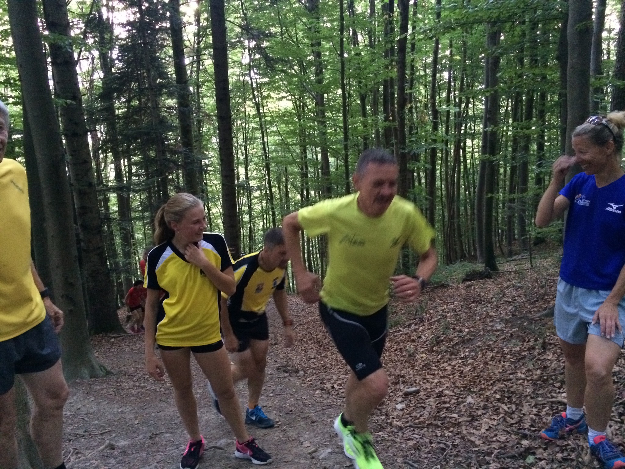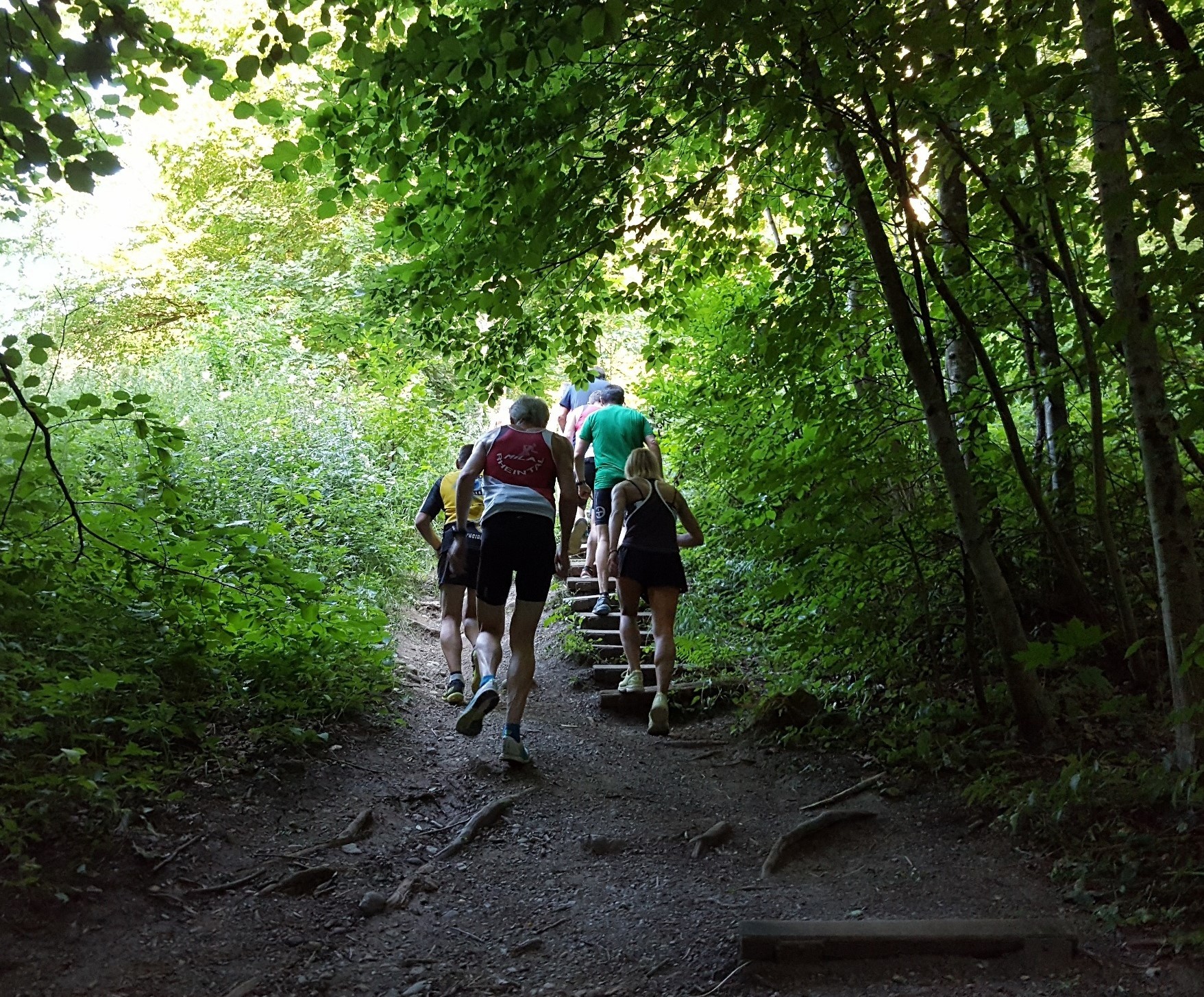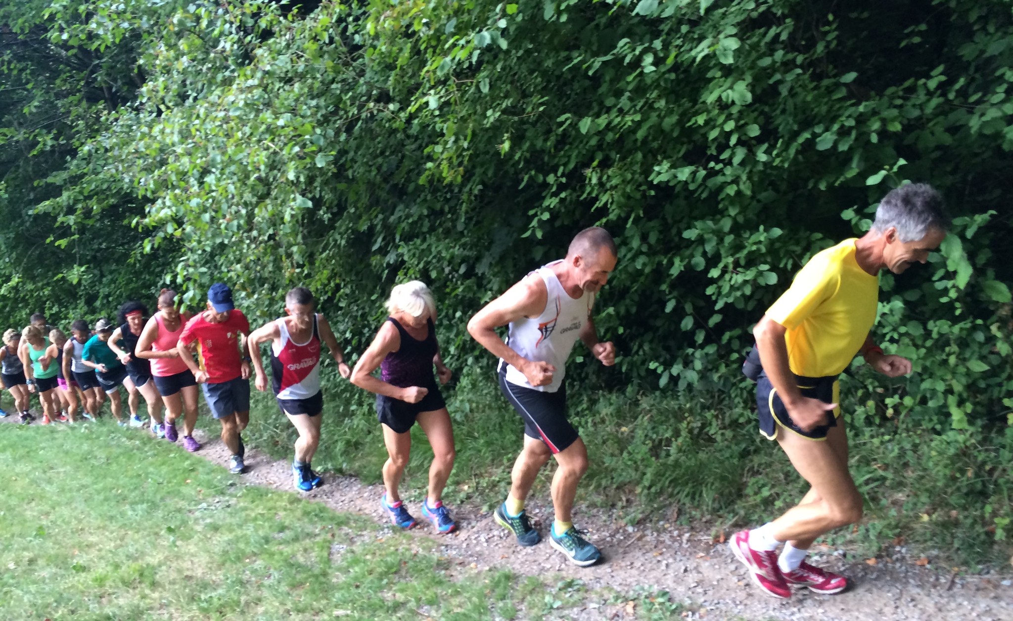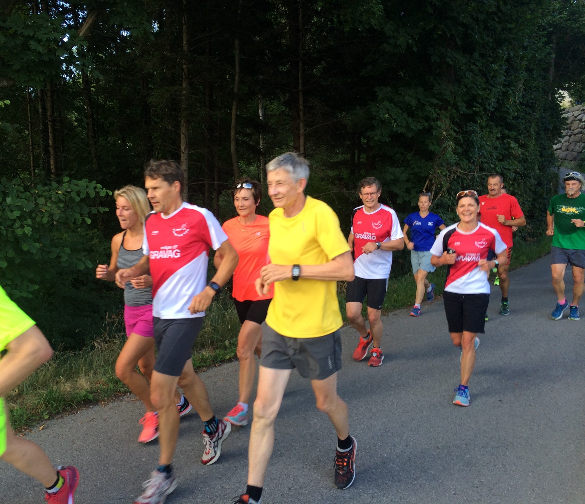 Das 3. Sommerprogramm 2018 hat dieses Mal bei mir stattgefunden. Um die 10 Milas haben sich für das bevorstehende Training bei mir im Garten versammelt. Das warme, schwüle Wetter verlangte zuerst nach etwas Flüssigem. Langsam sind wir zusammen Richtung «Hueb-Treppe» gejoggt. Die Stufen ganz nach oben trieben uns den Schweiss aus den Poren und haben uns gefordert. Der sehr steile Anstieg hoch zum «roten Hägli» haben wir zum grossen Teil im Pilgerschritt ausgeführt. Angekommen beim «roten Hägli» und mitten im Wald war die Temperatur angenehm und wir joggten weiter dem «Försterwegli» entlang und wieder hinab zum Forsthaus in Balgach. Die letzte Etappe nahmen wir über das Schloss Grünenstein zurück nach Rebstein. Schweissgebadet am Auenweg angekommen mussten wir zuerst unseren Flüssigkeitshaushalt in Ordnung bringen. Nach einer kurzen Erfrischung bei uns im Garten sind wir zum gemütlichen Teil übergegangen. Wir genossen eine feine Pizza und Pasta in der Pizzeria Punto Verde in Rebstein. Die lauschige Terrasse und das gute Essen liessen uns in Ferienstimmung abtauchen.