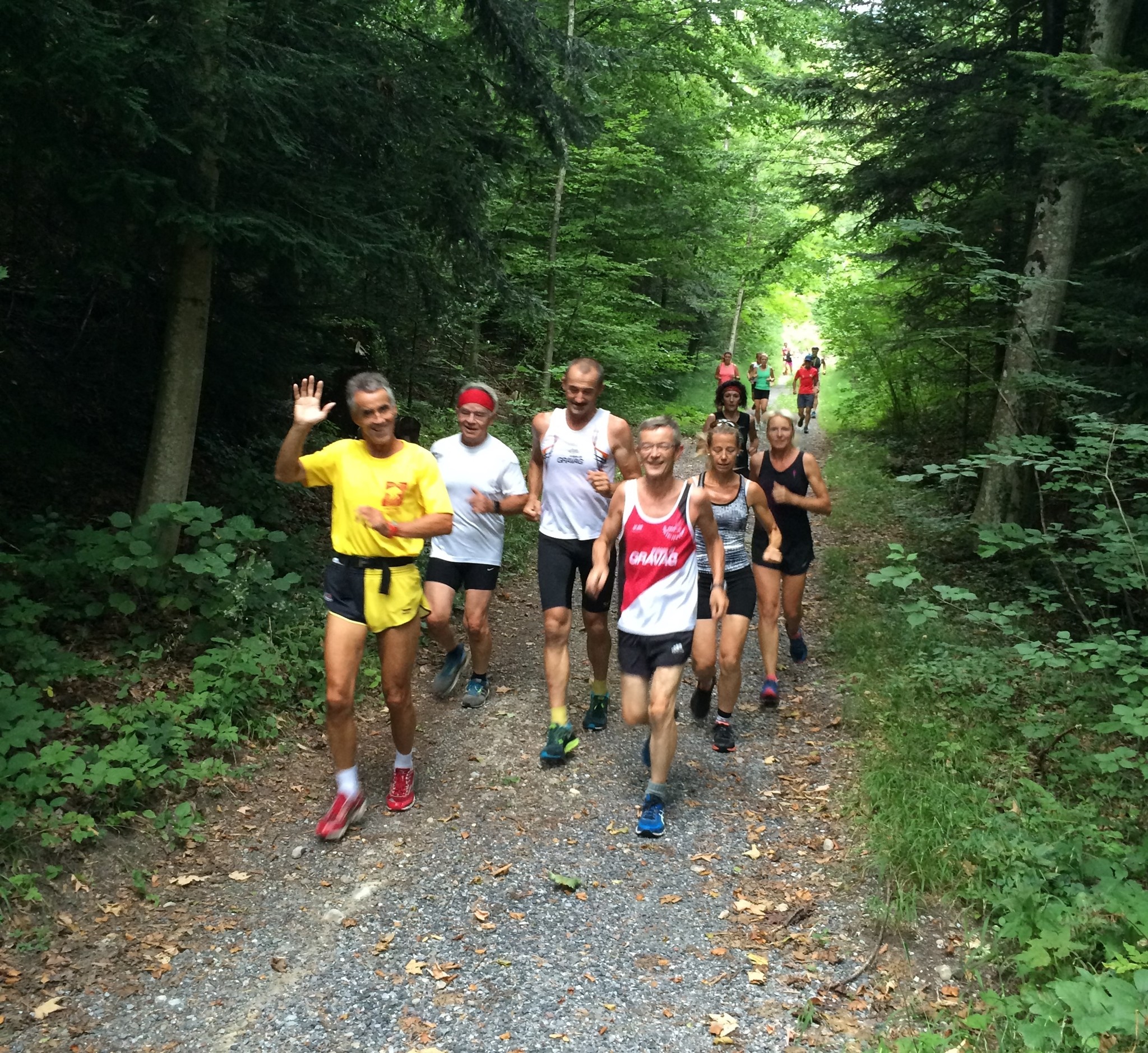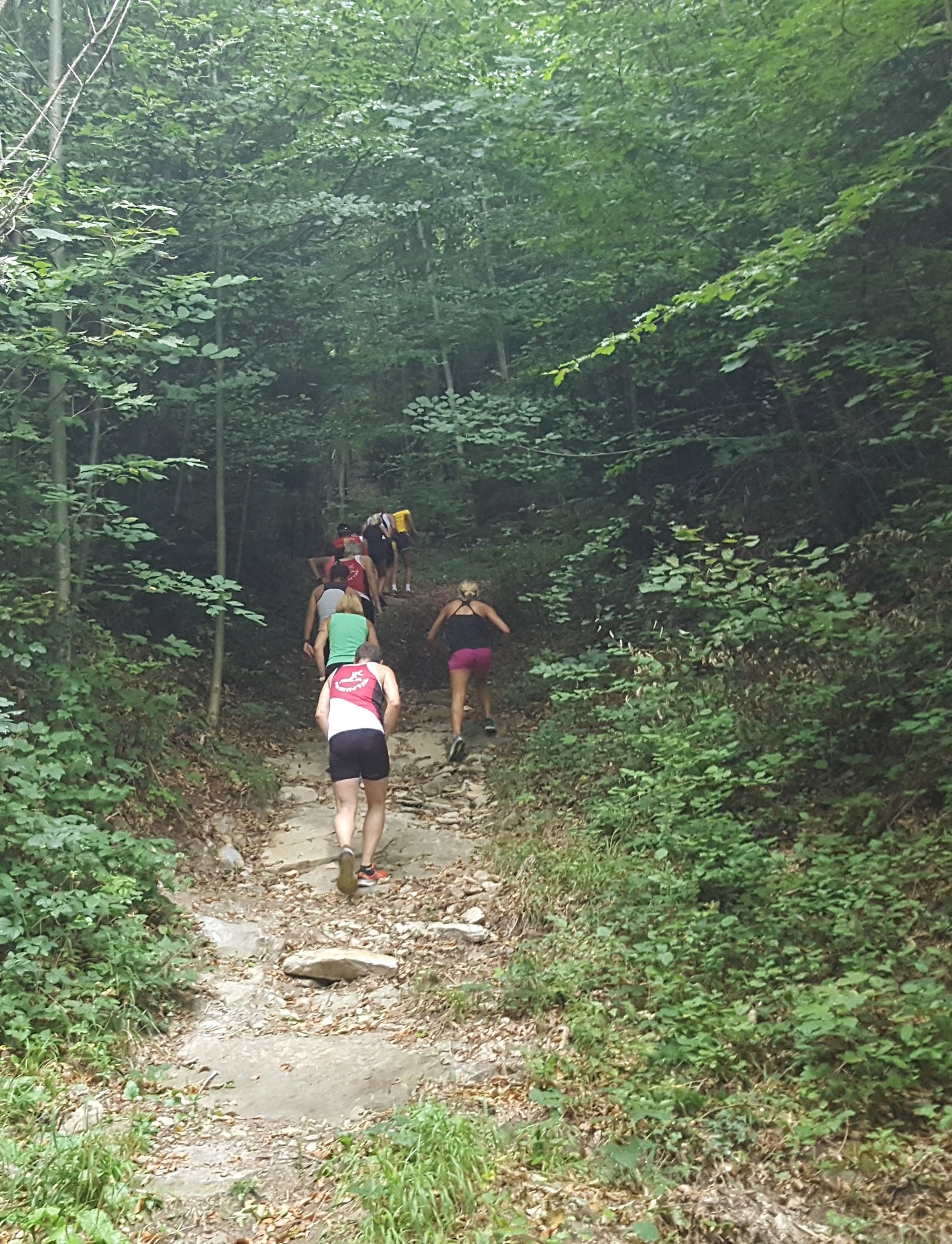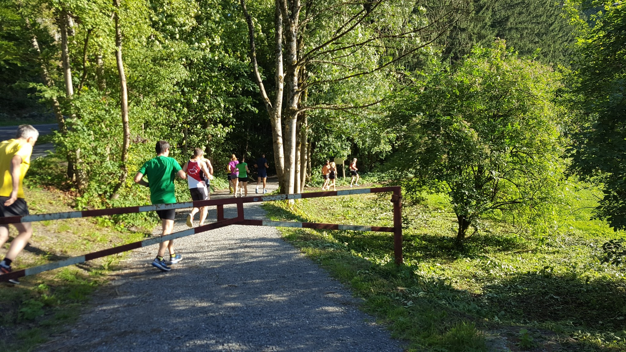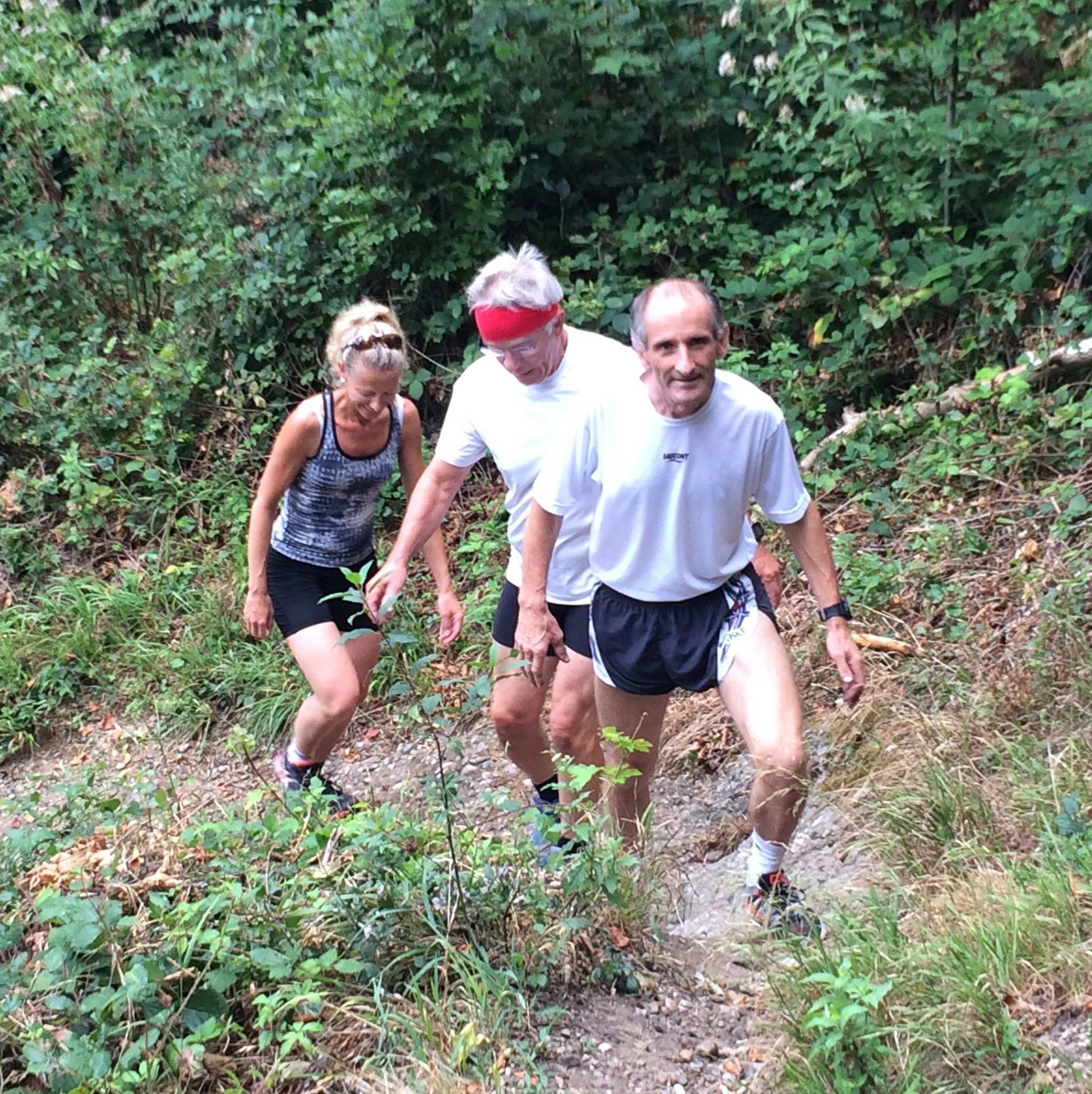 Das 3. Sommerprogramm 2018 hat dieses Mal bei mir stattgefunden. Um die 10 Milas haben sich für das bevorstehende Training bei mir im Garten versammelt. Das warme, schwüle Wetter verlangte zuerst nach etwas Flüssigem. Langsam sind wir zusammen Richtung «Hueb-Treppe» gejoggt. Die Stufen ganz nach oben trieben uns den Schweiss aus den Poren und haben uns gefordert. Der sehr steile Anstieg hoch zum «roten Hägli» haben wir zum grossen Teil im Pilgerschritt ausgeführt. Angekommen beim «roten Hägli» und mitten im Wald war die Temperatur angenehm und wir joggten weiter dem «Försterwegli» entlang und wieder hinab zum Forsthaus in Balgach. Die letzte Etappe nahmen wir über das Schloss Grünenstein zurück nach Rebstein. Schweissgebadet am Auenweg angekommen mussten wir zuerst unseren Flüssigkeitshaushalt in Ordnung bringen. Nach einer kurzen Erfrischung bei uns im Garten sind wir zum gemütlichen Teil übergegangen. Wir genossen eine feine Pizza und Pasta in der Pizzeria Punto Verde in Rebstein. Die lauschige Terrasse und das gute Essen liessen uns in Ferienstimmung abtauchen.