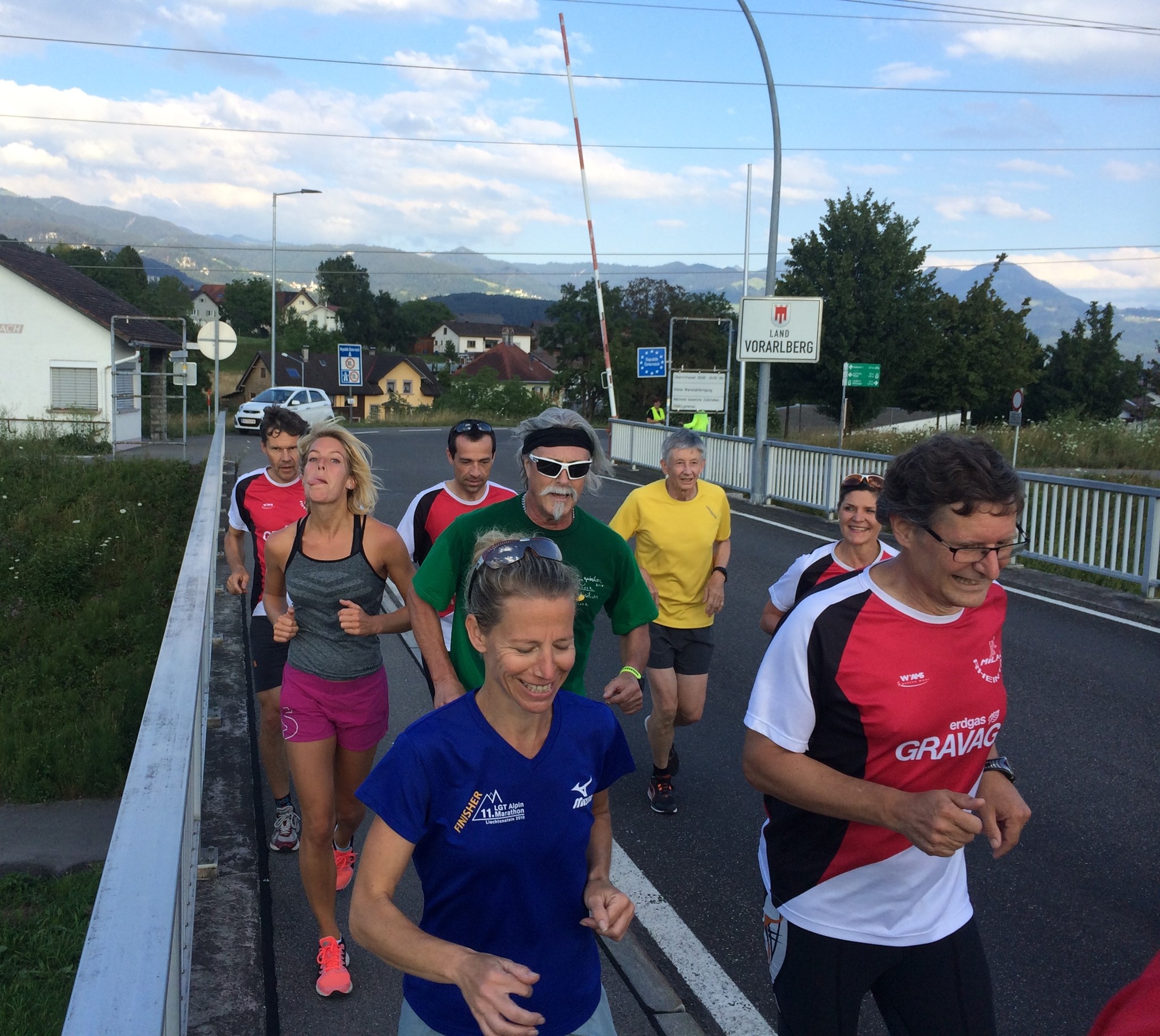 Auch dieses Jahr dürfen wir uns auf ein spannendes Sommerprogramm freuen. Gestartet am 11. Juli 2018 hat Denise mit einer Runde in Montlingen/Koblach. Eine große Schar Läuferinnen und Läufer haben sich auf dem Kirchplatz in Montlingen versammelt. Denise hat kurz die Route erklärt. Von Montlingen aus ging es in das benachbarte Dorf, wo man einen Ausweis benötigt hätte – aber wir sind ja sehr schnell. Ueber der Grenze in Koblach ging es hoch zum «Kummaberg». Vorbei am Klettergarten und auf schönen Waldpfaden ging es aufwärts. Steile Passagen haben uns gefordert, bis wir endlich auf der Aussichtsplattform ankamen. Der anstrengende Aufstieg belohnte uns mit einem atemberaubenden Ausblick über das Rheintal bis hin zum Bodensee. Nach kurzer Pause ging es retour nach Montlingen. Zu Hause bei Denise erwartete uns eine kleine Erfrischung und nach verdienter Dusche ging es weiter zu gemütlichen Teil im Restaurant Kreuz in Montlingen. Bei geselliger Rund und einem guten Essen ließen wir den Abend ausklingen.